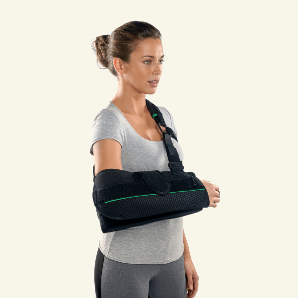 - De zachte enveloppe kan snel geopend worden voor een mobilisatie van de arm of voor persoonlijke hygiëne, zonder dat sling of kussen volledig moet afgenomen worden.